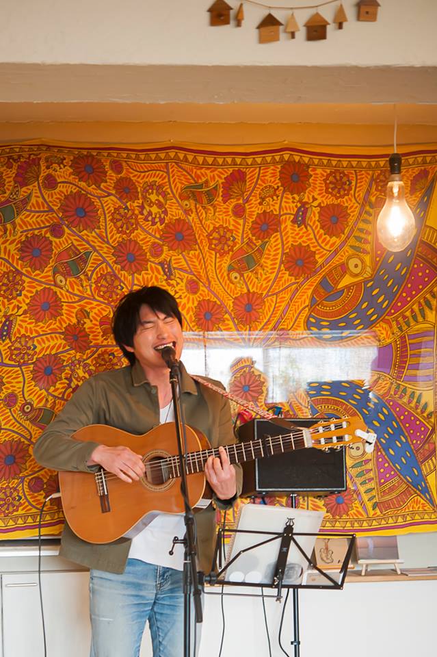 ひとしきり語ったあとは、鎌倉からイケメンシンガーソングライターの小畑仁さんによる優しい歌声とギターの弾き語りライブを堪能。